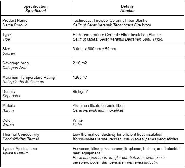 Technocast Firewool Ceramic Fiber Blanket