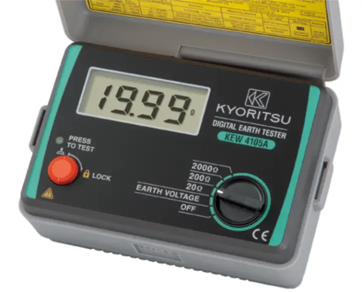 A dedicated earth resistance tester is used—not a standard multimeter.