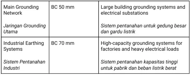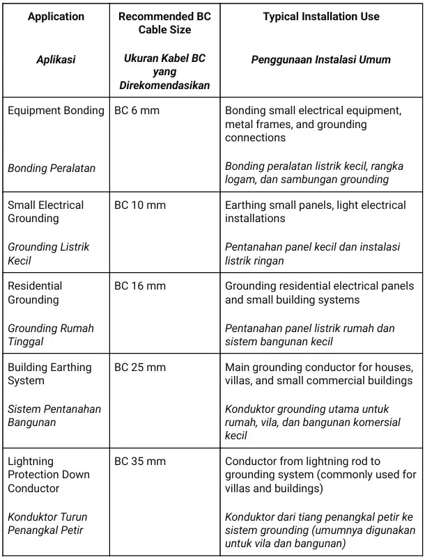 BC cable is typically installed to connect lightning rods, grounding rods, electrical panels, and equipment bonding systems, allowing electrical energy from lightning or faults to safely dissipate into the ground.