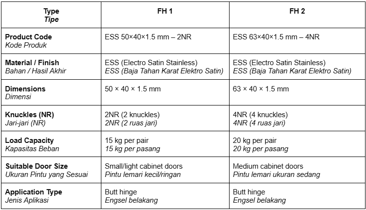 These furniture hinges from Dekson are designed to deliver smooth, stable performance for cabinets, wardrobes, and general furniture installations. Built with reinforced hinge knuckles, they provide reliable alignment and consistent movement, even with frequent daily use. Their satin stainless finish offers strong resistance against corrosion, moisture, and tarnishing, making them suitable for kitchens, wardrobes, and humid environments. The clean, modern appearance blends seamlessly with contemporary hardware and complements a wide range of interior styles. These hinges are an excellent choice for carpenters and furniture makers who need dependable functionality and a professional, polished finish.