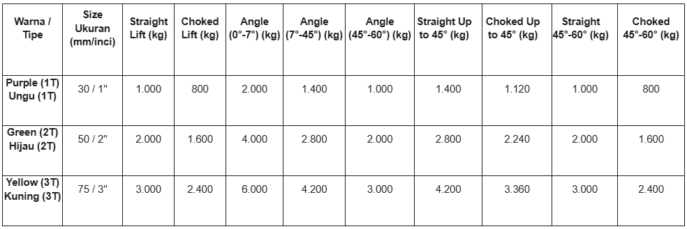 Available in 1T, 2T, and 3T capacities, with 2m, 3m, and 4m lengths to suit a range of lifting requirements.