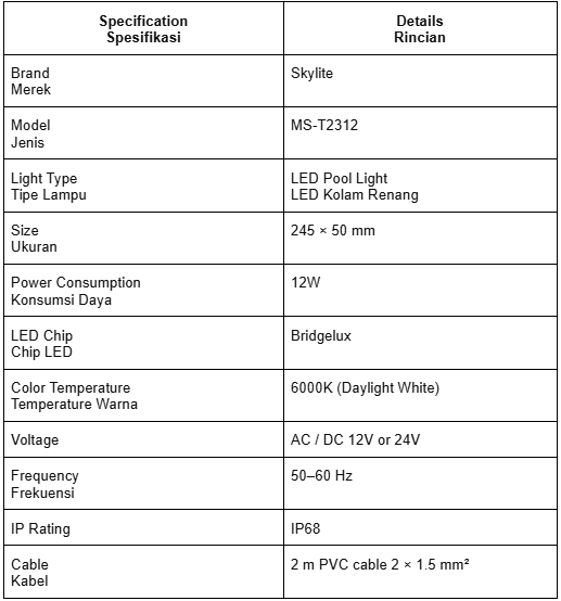 This LED Pool Light is designed to deliver clear, even illumination that enhances pool visibility and aesthetics. Its slim, modern form integrates neatly into pool walls while providing reliable lighting performance. Engineered for underwater environments, this light offers dependable operation, efficient energy use, and long-term durability, making it suitable for both residential and commercial swimming pools.