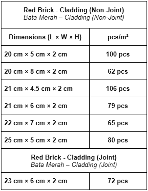 Crafted from high-quality red clay and volcanic sand from Tabanan, Bali, this cladding brick is designed as a lightweight, non-structural solution that enhances both modern and traditional spaces with timeless charm. The joint type creates a traditional, rustic, architectural look with visible horizontal and vertical lines—ideal for industrial or vintage style designs—or the non-joint style for a sleek, modern, and minimal appearance with smooth surfaces and tighter shadow lines, perfectly suited for contemporary, Japandi, or minimalist concepts.