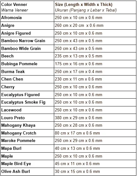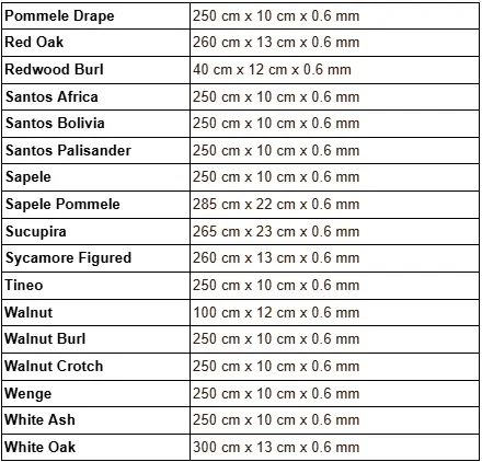 NOTE : Veneers are sold in varying lengths and widths depending on the species, check our size specifications for more details.